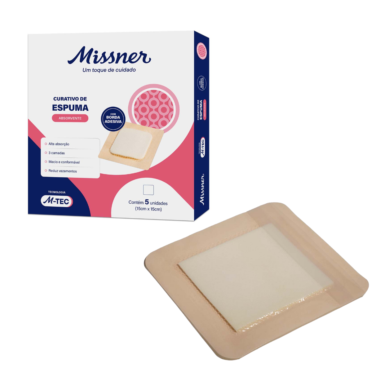 O Curativo de Espuma Absorvente M-TEC com Borda (Border), referência PA.1460, é um avançado sistema de 3 camadas projetado para o manejo de feridas com exsudato moderado a alto. Sua tecnologia combina uma camada de espuma hidrófila de Poliuretano (PU) de alta absorção com uma camada de contato perfurada de silicone adesivo, tornando-o macio, conformável e não-aderente ao leito da ferida.